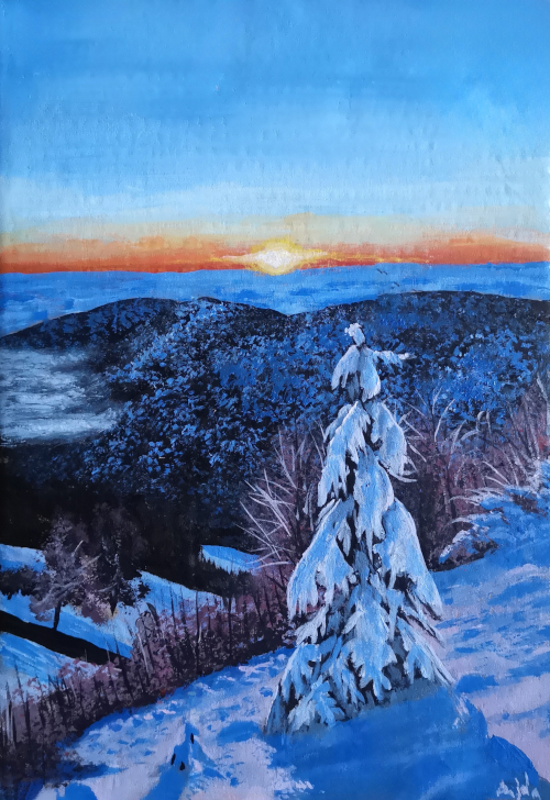 I aim to capture the breathtaking nature around me through my paintings, using mostly acrylics and watercolors.